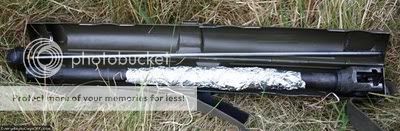 mengikatnya dan menaruhnya di dalam laras Rheinmetall MG 3, dan menembakkan sebanyak 150 butir peluru.